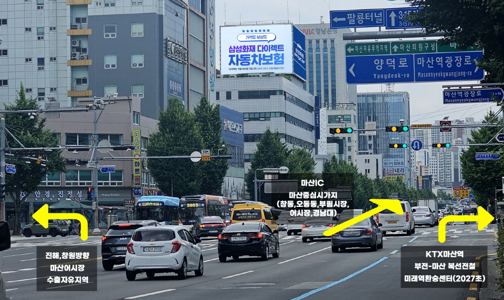 3. (구)창원시와 (구)마산시를 잇는 핵심대로 315대로 8차선 도로상의 옥상 전광판